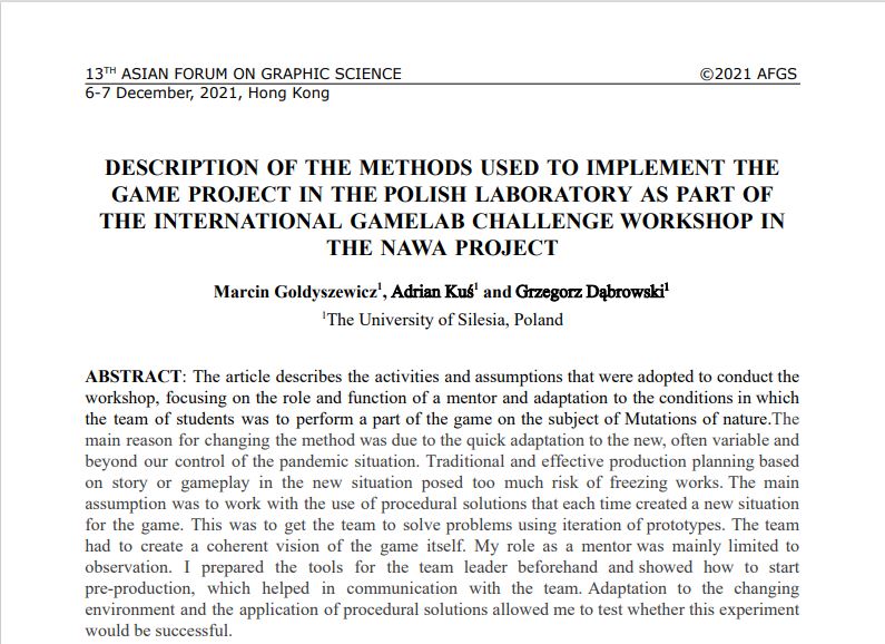 I am delighted to announce that the same paper, exploring the effectiveness of methods employed during the Game Lab Challenge in 2020, has been published in the conference publications of the University of Silesia. This further extends the reach and impact of our findings, contributing to the academic discourse within our institution and beyond. The recognition within our university underscores the paper’s significance in advancing knowledge and innovation in the realm of game development methodologies.